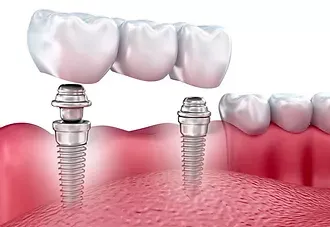 Per sostituire 3 o 4 denti adiacenti si usa il ponte sorretto da impianti dentali che svolgono il compito di pilastri di sostegno.